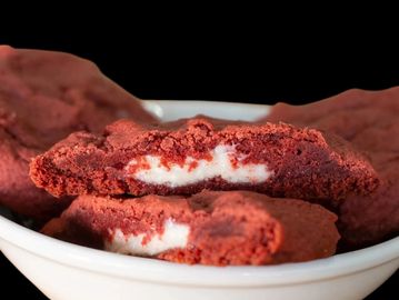 Our red velvet cookie has a creamy made from scratch cream cheese filling, bursting with flavor and complimenting the rich, red velvet flavor.
