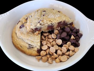 Our combo cookie combines the best of both worlds.  Chocolate chips and peanut butter chips are baked in our classic chocolate chip recipe. Sea salt sprinkled on top give this cookie a little extra kick.