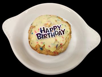 Every day is a Birthday celebration when eating our Birthday cake cookie.  Rainbow sprinkles and a sweet vanilla frosting top this specialty cookie made for the kid in all of us.