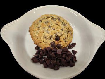 A twist on oatmeal raisin, this cookie is baked with chocolate chips, crisp oats with a crunchy outside and a chewy center. Another gourmet creation.